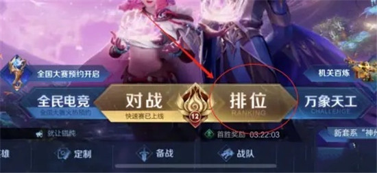 1、首先,登录游戏后,在首页选择进入【排位】。